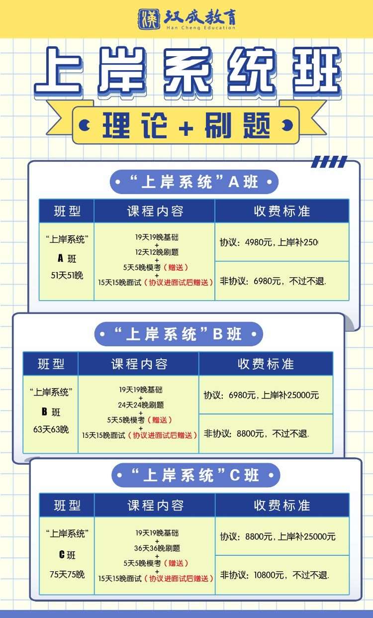 面试阶段:基础3-4天讲练结合 快速掌握答题技巧思路,开口答题,有内容 不空话;基础过后大量刷真题,采取互相对练,讲师针对性点评,每日考核素材积累情况以及让学生抽题答题,针对不足之处点评耐心讲解,攻破瓶颈,高效提升面试答题应变能力;考前设置模考,提前让学生感受考场氛围,为接下来正式上战场做好充分的准备。